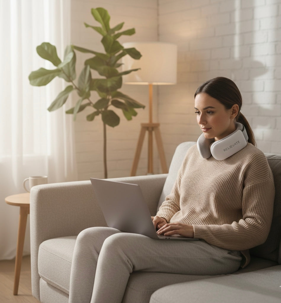 Using advanced EMS pulse therapy combined with soothing heat, RELIEVATE targets deep muscle tension that your hands simply can’t reach — helping your neck and shoulders relax in just 15 minutes a day.